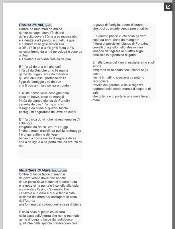 De André, Fabrizio Cantautore, nato a Genova il 18 febbraio 1940, morto a Milano l'11 gennaio 1999. Dopo aver compiuto gli studi classici nella sua città, cominciò a suonare la chitarra in un gruppo jazz, entrando al tempo stesso in contatto con cantautori come L. Tenco, G.